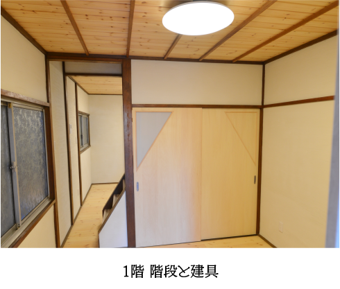 昭和46年建築の連棟2戸1の建物を、節だらけの「松」の板材を床や天井に使用して大規模リフォームしました。 内壁材や塗料には自然素材をふんだんに使用し、建具や階段のデザインにもこだわったつくりにしました。