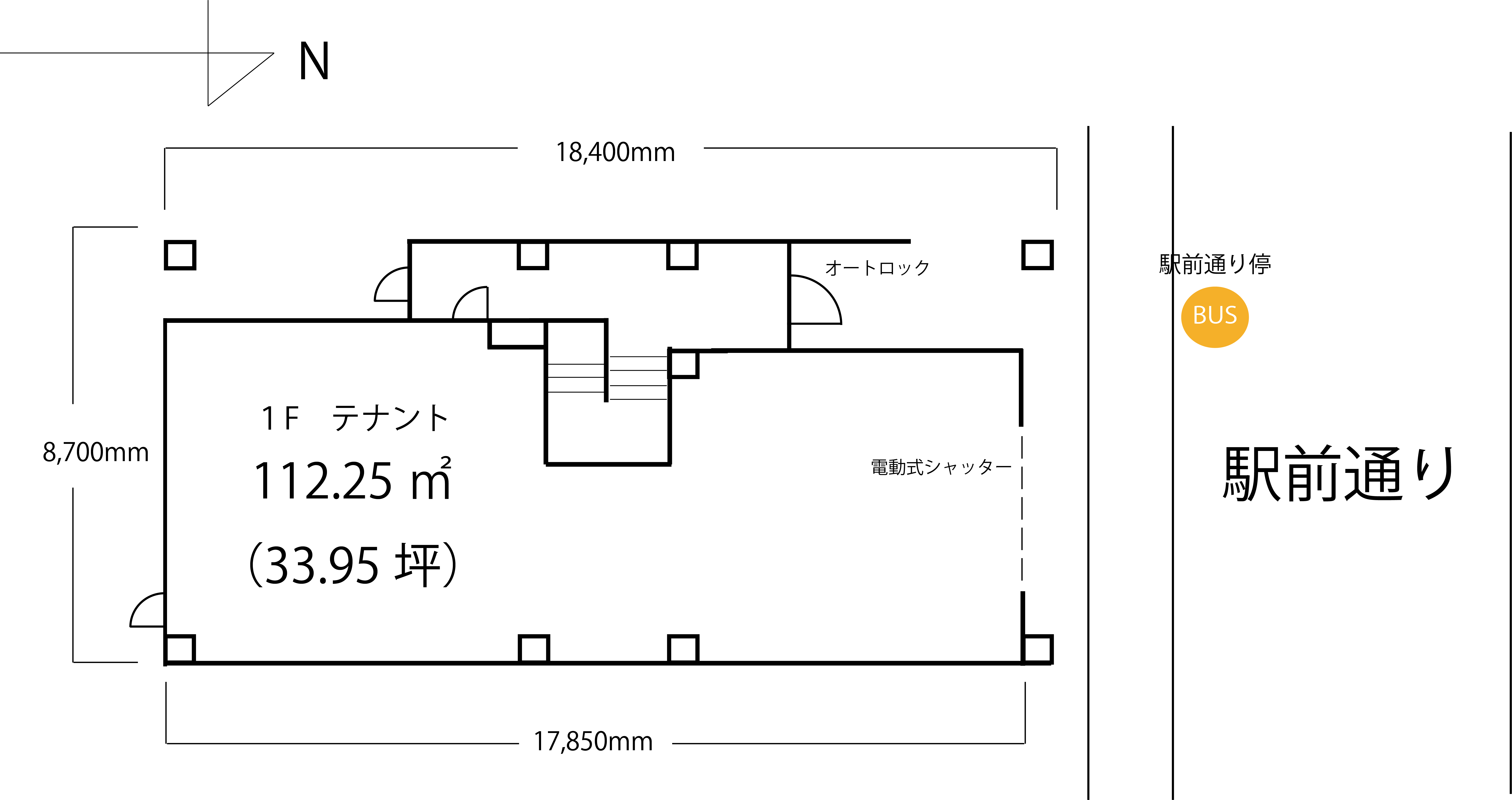目の前にはバス停があり通勤や通学に 利用される好立地。
